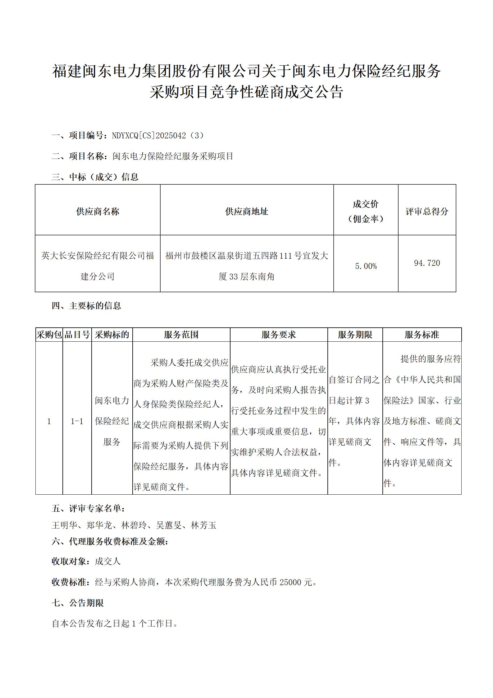 福建閩東電力集團(tuán)股份有限公司關(guān)于閩東電力保險(xiǎn)經(jīng)紀(jì)服務(wù)采購項(xiàng)目競(jìng)爭(zhēng)性磋商成交公告